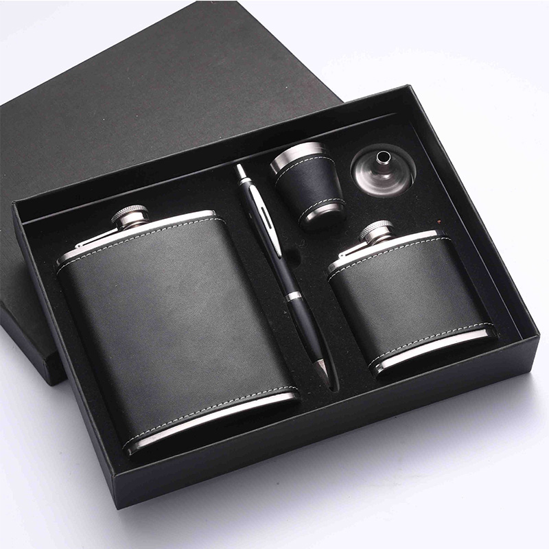 Stainless steel Hip Flasks Set have two bottles , one pen , one cup inside, are highly durable and resistant to rust, corrosion, and impact. They can withstand rough handling and are less susceptible to damage compared to flasks made from other materials. Logo Customization Service Package Customization Service Label Customization Service