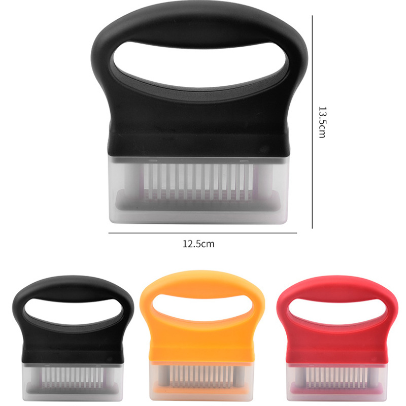 This product is made of food grade 304 stainless steel and equipped with multiple sets of thick and sharp steel needles. Through physical puncture, it accurately cuts the connective tissue in the meat, easily solving the problem of difficult chewing of lean meat and dry wood. The press type design is labor-saving and convenient, with an automatic rebound baffle for safe protection, avoiding hand injury or sticking of minced meat during operation. It is suitable for various ingredients such as steak, pork tenderloin, chicken breast, etc.
